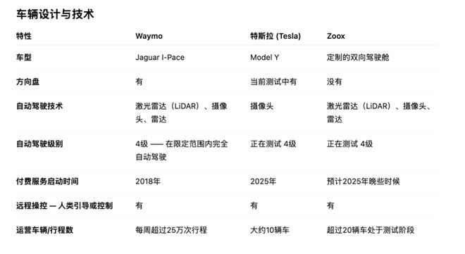 需要注意的是,特斯拉Robotaxi和竞争对手的技术路径有很大不同。竞对使用激光雷达(LiDAR)、摄像头和毫米波雷达的冗余感知系统,且对高精度地图的依赖程度较高。而特斯拉则选择了纯视觉方案,而这种方案一直备受争议。