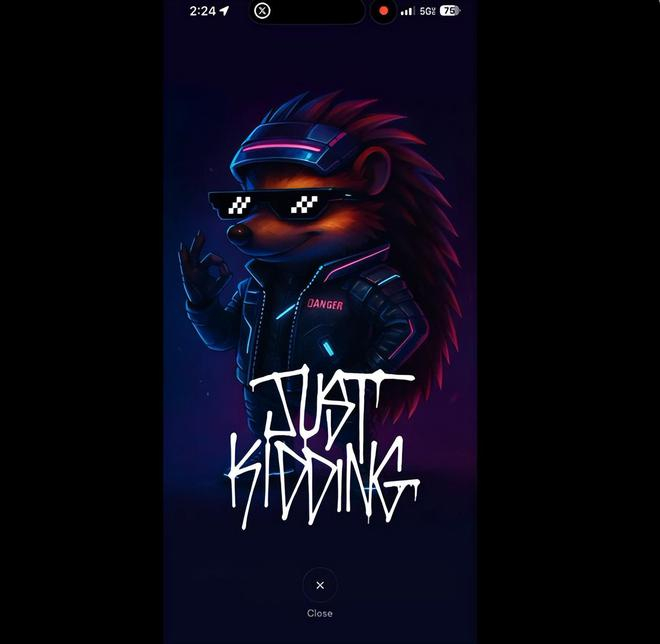 最后,在旅程结束时,用户可以对行程进行评分,甚至留下“小费”……但实际上并非如此:当用户点击给消费的按钮后,会看到“开玩笑达”的画面——典型的马斯克式俏皮。