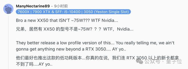 有人认为,RTX 5050作为x50系列卡,能耗最高130W太高了。