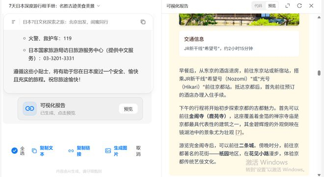 大约15—20分钟左右,Kimi-Researcher搜索数百个网站,生成了一份数万字的详细报告—《天数智芯深度研究报告:AI芯片新势力的崛起与投资价值分析》,包括公司概览与核心优势产、品与技术实力分析、市场竞争与战略分析等方面,还用表总结了天数智芯主要产品系列及其特点、竞品概况等,另外,最后还附带一份可视化报告,该报告还可以通过复制文本、链接和生成图片保存。