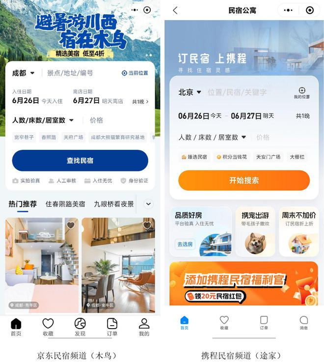 京东和携程在民宿领域都选择了引入成熟供应链——携程背后的途家与京东背后的木鸟。