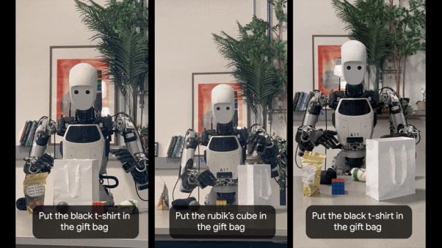 更重要的是,这款模型可以完全在机器人设备本地离线运行。谷歌表示,由于运行时无需依赖数据网络,这一模型非常适用于对延迟敏感的应用场景,并能在网络连接不稳定甚至完全中断的环境中稳定运行——换言之,即使是在完全断网的情况下,搭载这款模型的机器人设备也能做到“看得见、听得懂、做得了”。
