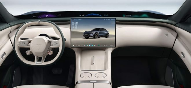 YU7 这个全景显示的可视峰值亮度达到了 1200nits,全局 903 分区控光,内嵌超黑显示涂层,且融合了畸变矫正算法,里面的内容,则由三块 Mini LED 屏幕提供。