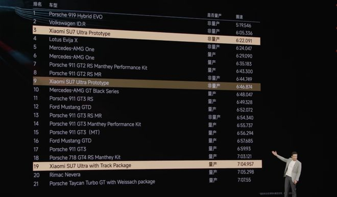 小米 SU7 Ultra 的原型车在纽北赛道的最新圈速来到了 6 分 22 秒 091。