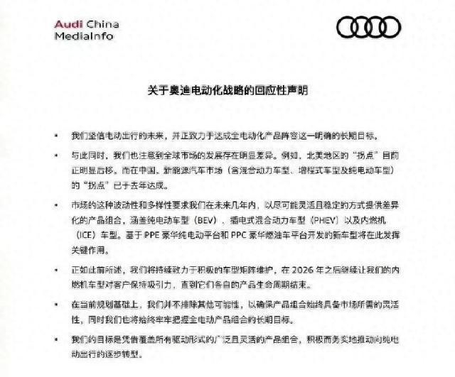 这可是个大转弯!要知道,奥迪原来打算明年就停止研发新的燃油发动机技术,甚至想过2026年后不再出新的燃油车型。但现在,这些计划都悄悄搁置了。