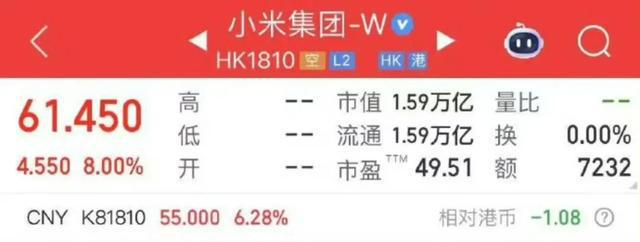6月27日,小米集团-W(1810.HK)高开,公司股价首次突破60港元,创历史新高。
