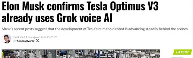 马斯克确认:人形机器人Optimus V3 将引入Grok语音助手