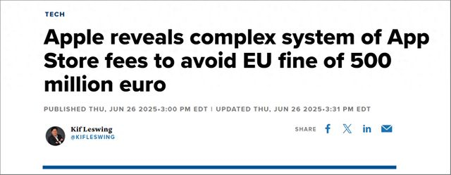 【环球网科技综合报道】6月27日消息,据外媒报道,苹果对其 App Store 欧洲政策进行了修改,称新规将帮助该公司避免因违反《数字市场法案》而被处以罚款。