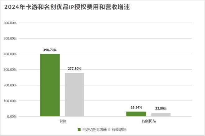 2024年,卡游和名创优品的IP授权费用分别同比增长了398.70%和29.54%,增长幅度远高于同期的营收增速——277.80%和22.8%。而这一趋势并未得到扭转,今年一季度名创优品的IP授权费用达到1.05亿元,同比增长了39.6%,但公司营收仅增长18.9%。