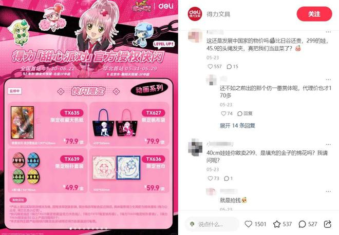 已经有网友开始吐槽谷子文具商品定价过高。在小红书,得力官宣《守护甜心!》联名周边价格的内容动态下,定价太高的声音成为主流。这也一定说明,借谷子走中高客单价的路,实现起来没那么容易。