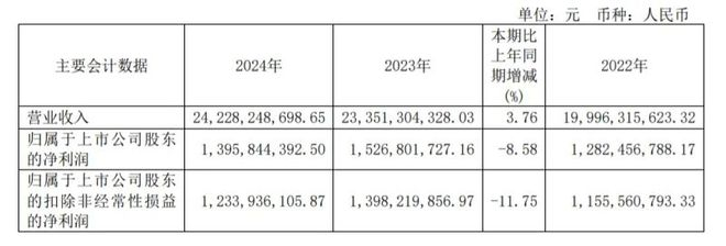 以晨光为例,其2024年报显示,公司的总收入虽然同比上升了3.76%到242.28亿元,但归母净利润却同比下降8.58%至13.96亿元。