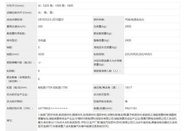 近日,记者在工业和信息化部发布的第396批《道路机动车辆生产企业及产品公告》新产品公示获取到吉利银河M9的申报信息。新车搭载千里浩瀚H5级辅助驾驶系统与雷神超级电混技术,百公里加速4.55秒,综合续航超1500km,预计二季度末三季度初上市。