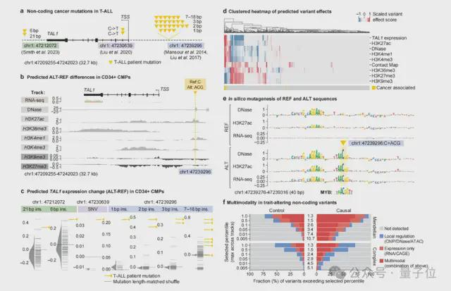 例如在一项针对T细胞急性淋巴细胞白血病(T-ALL)的研究中,AlphaGenome就通过引入MYB DNA结合基序,成功解析了TAL1基因附近的致癌变异。