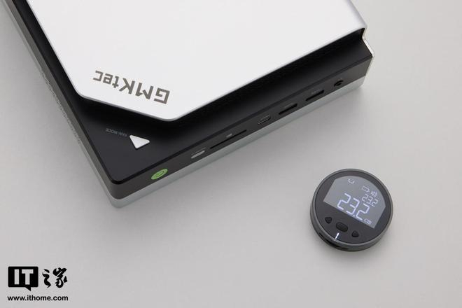 极摩客 EVO-X2 作为一款 Mini 工作站桌面主机,整体还是十分小巧紧凑的,IT之家实测机身的厚度为 77.0mm,长和宽分别为 23.2cm 和 22.1cm。