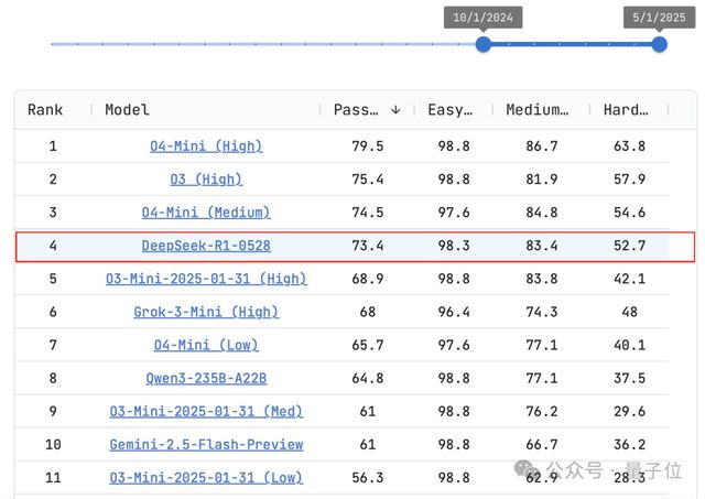 看名字你可能以为是个小版本更新,但实际上它在LiveCodeBench上几乎与OpenAI o3-high相当。