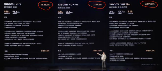 昨晚小米YU7上市发布,终于公布了大众关注已久的价格,三个版本起步价分别为:25.35万、27.99万、32.99万。