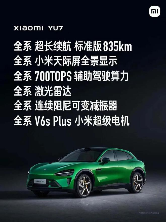 综合来看,小米YU7的这个定价确实是相当能打的,产品核心竞争力来自雷军发布会上总结的那几项全系标配: