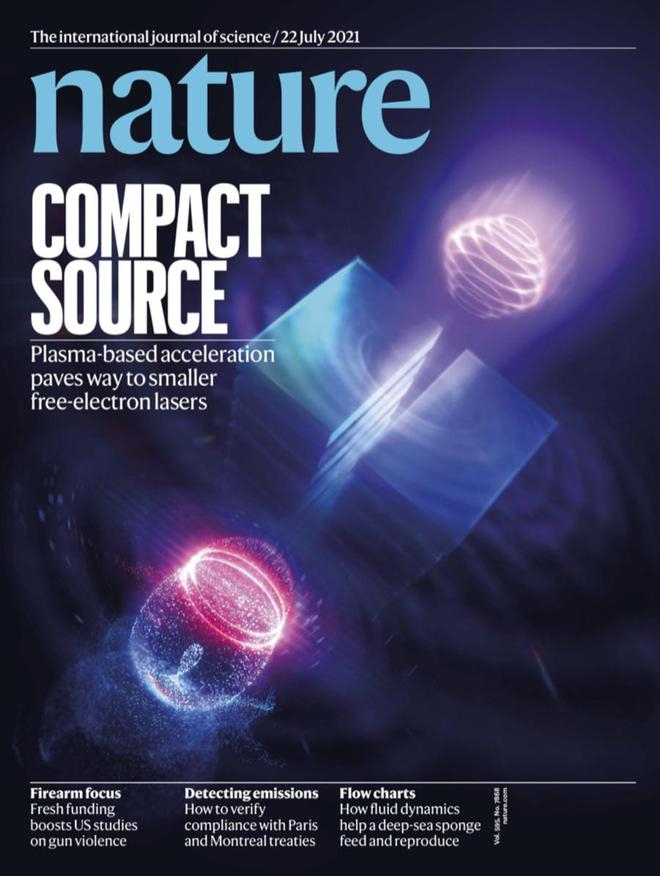 终于,在2019年12月31日凌晨,他们在国际上率先完成了台式化自由电子激光装置原理的实验验证。2021年,论文作为封面文章发表在《自然》上,轰动了整个激光加速领域。