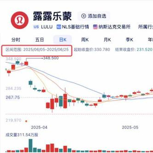 公布2025财年一季报后,lululemon股价几乎连跌14个交易日,单日最高跌幅接近20%。截至6月25日,股价累计暴跌30.01%;市值跌剩约277.54亿美元,相比超640亿美元历史峰值,蒸发近363亿美元(约合人民币2601亿元)。
