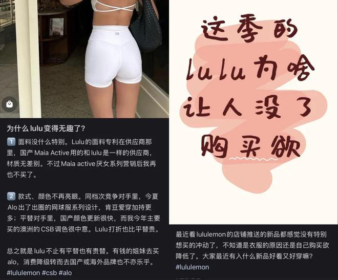 《中国经营报》曾提到一个现象:如今大多消费者在选购lululemon产品时,只考虑那几个经典的爆款。原因固然与消费惯性有关,但小红书上关于"lululemon为何越来越无趣"的讨论中,网友们不约而同地提道:"来来去去就那几个款,换个颜色竟也能叫新品。"