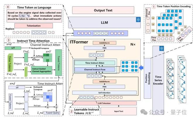 ITFormer的设计思想是作为一个轻量级的”桥梁”,在冻结预训练时序编码器和大型语言模型(LLM)的前提下,实现两者的高效对齐与融合。