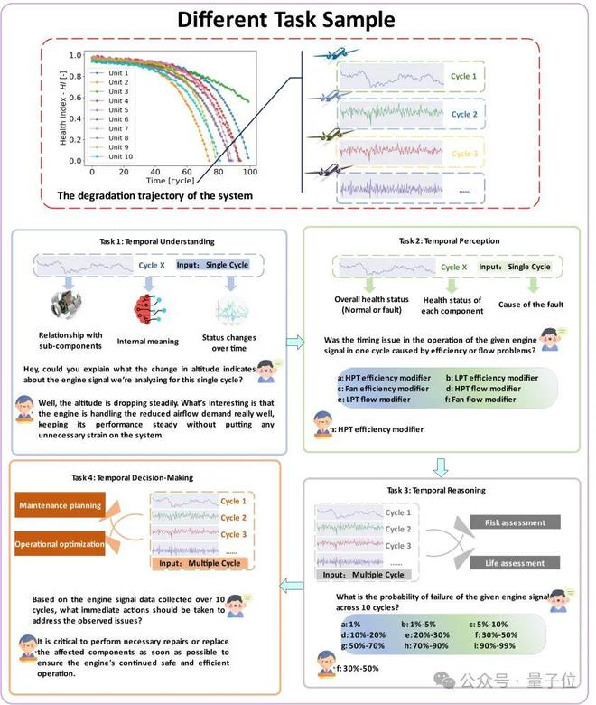 团队基于NASA航空发动机数据,构建了包含11万余问答对的EngineMT-QA数据集。该数据集的任务设计紧密贴合专家的认知流程,为评估模型在真实工业场景下的推理能力提供了首个标准化基准。