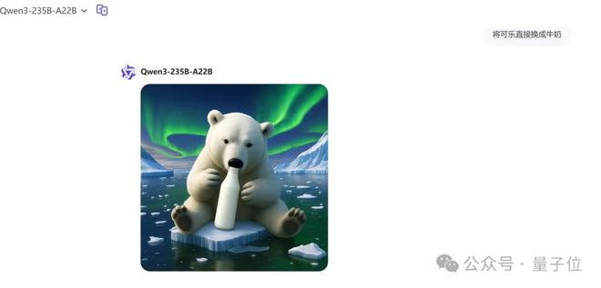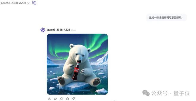 第一测,让它先生成一张北极熊喝可乐的照片。