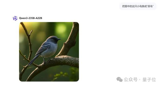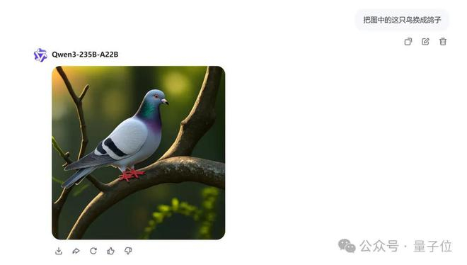 看下图成果,在不改变其它元素的基础上,Qwen-VLo给咱们把图中的鸽子换成了别的鸟。