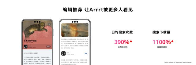 用户能在Arrrt这款App中随时随地欣赏大师名作、阅读创作故事,让艺术成为 “精神早餐”,这与AppGallery“精致”的主张高度契合。其团队分享,AppGallery探索页上线《Arrrt》相关专题,鸿蒙版Arrrt的日均搜索次数提升390%,搜索下载量提升1100%,让《Arrrt》在极短的时间内被更多用户所看见。