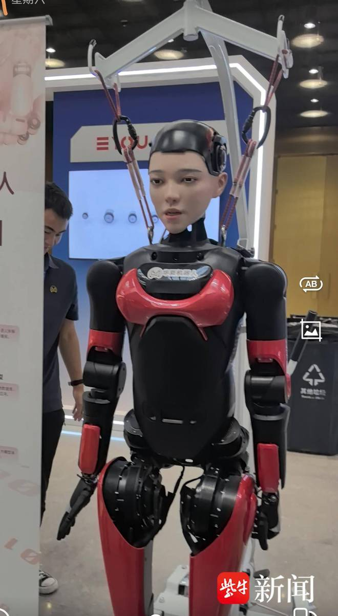 “欢迎光临,我是云幕智造的白雪公主。”6月28日,在江苏省具身智能机器人产业联盟成立仪式暨产业创新发展对接会上,这款来自苏州太仓的具身机器人凭借逼真的外形、吹弹可破的皮肤,吸引了众人目光。云幕智造交付经理赵思男告诉扬子晚报/紫牛新闻记者,这款文旅接待机器人已在多个场景落地,凭借24自由度面部表情、AGV跟随底盘和多模态交互能力,成为展会引导、商务接待的”明星员工”。