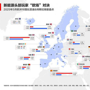 2025年5月,比亚迪在欧洲五大市场(英法德意西)以10199辆销量首次单月破万,以6619辆优势碾压特斯拉,中国电动车凭借本土化战略与技术输出实现历史性反超。