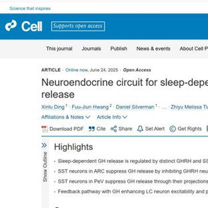 该文章介绍,下丘脑中两类神经元——生长激素释放激素(GHRH)神经元和生长抑素(SST)神经元在睡眠不同阶段的活动模式及其对生长激素(GH)分泌的精确调控,此外,该研究还发现生长激素通过增强蓝斑核(LC)神经元的兴奋性以促进觉醒。从而解析了睡眠依赖性生长激素释放的神经内分泌回路,该神经回路保证了睡眠期间生长激素的大量释放,又防止了过量释放。