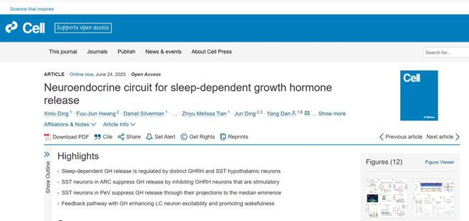6月24日,美国国家科学院院士、美国艺术与科学院院士丹扬团队(丁歆璐博士为第一作者)在国际顶尖学术期刊Cell上发表了题为:Neuroendocrine circuit for sleep-dependent growth hormone release 的研究论文。