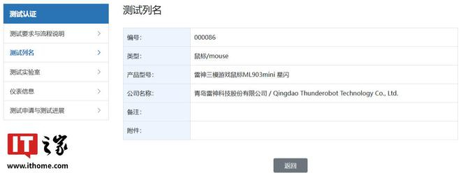 IT之家 6 月 29 日消息,产品型号为“雷神三模游戏鼠标 ML903 mini 星闪”新品已通过星闪联盟认证,相关页面显示其来自青岛雷神科技股份有限公司。根据过往通过星闪认证的产品发布情况来看,该款新品有望近期上市。