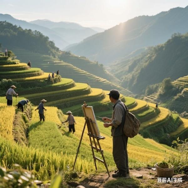 图二:AI生成的“艺术家做田野调查”则逼近于采风的传统。