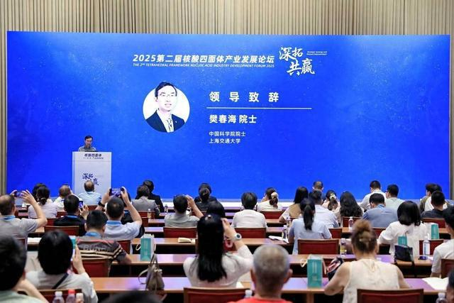 中国科学院院士樊春海在致辞中表示,自己作为深耕DNA纳米技术领域二十年的研究者,见证了框架核酸技术从基础研究到临床转化的完整历程。他指出:“特别是核酸四面体技术,以其独特的结构可编程性和生物相容性,在精准医疗、靶向药物递送等领域展现出革命性的潜力。”