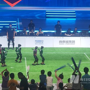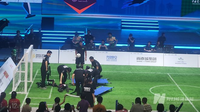 机器人“球员”进球姿势各异,抬“伤员”的担架成“全场最忙”