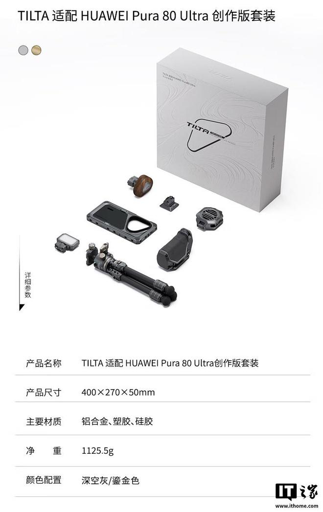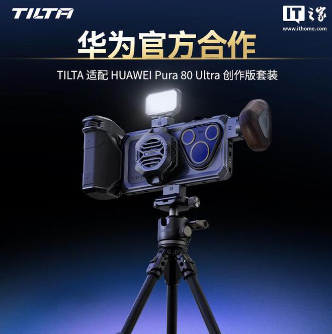 IT之家 6 月 30 日消息,铁头 TILTA 与华为合作,为华为旗下 Pura 80 Ultra 推出一款铁头手机配件套装,提供专用手机壳、跟焦供电侧手柄、散热器、通用快拆转接件、通用 mini 补光灯、三脚架等配件,目前相应套装已在京东开售,售价 3299 元。