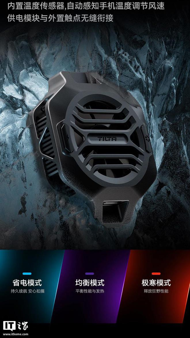 该摄影手机壳还可加装散热器,相应散热器支持磁吸和夹持模式,每分钟最高 6700 转,散热面板温度可低至-8℃。