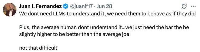 还有人认为,我们其实不需要 LLM 理解,只要它们表现得越来越好就够了。即使是人类,也并不总是可以理解。