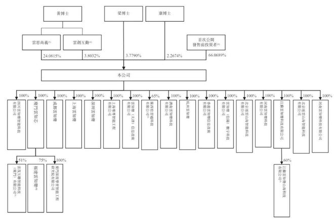 IPO后,黄伟博士通过云思尚义持股为23.55%,通过云创互动持股为3.72%,梁家恩博士持股为3.7%,康恒博士持股为2.22%。