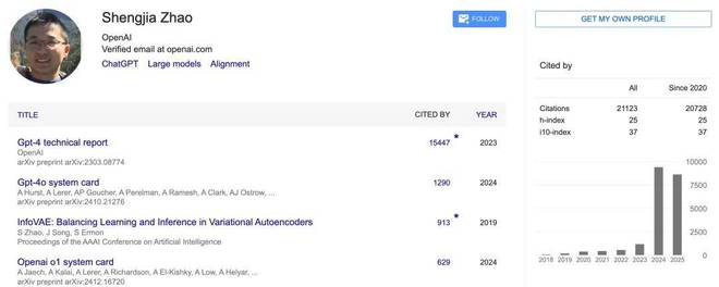 加入 OpenAI 之后,Shengjia Zhao 参与了重要大模型的训练,包括 GPT-4、GPT-4o 和 o1。