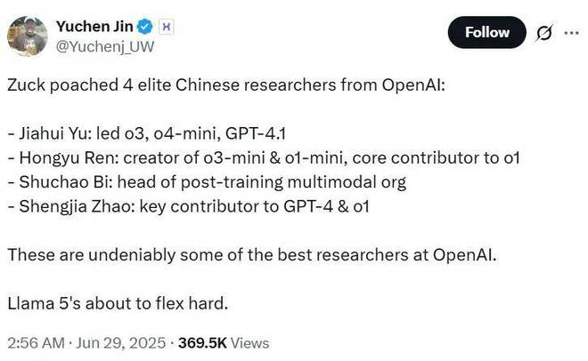 OpenAI四位华人学者集体被挖,还是Meta重金出手