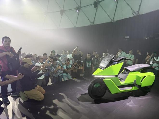 原型车出现在发布会上时,造型、智能化引观众注目。这台摩托车在自动驾驶下从舞台一侧行驶到另一侧,根据介绍,可以自动跟车、自动泊车并充电,以及在发生碰撞时自主降低车速、提醒避让。印尼用户依赖摩托车,一天骑 50 公里甚至更远,路上多拥堵,它的特色功能之一是保持平衡,堵车、等红绿灯时不用把脚放下来支撑。