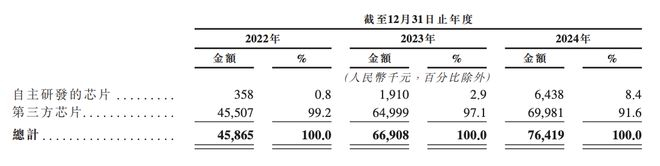 云知声为客户提供自研芯片和第三方芯片,三年间第三方芯片收入占比均超过90%。