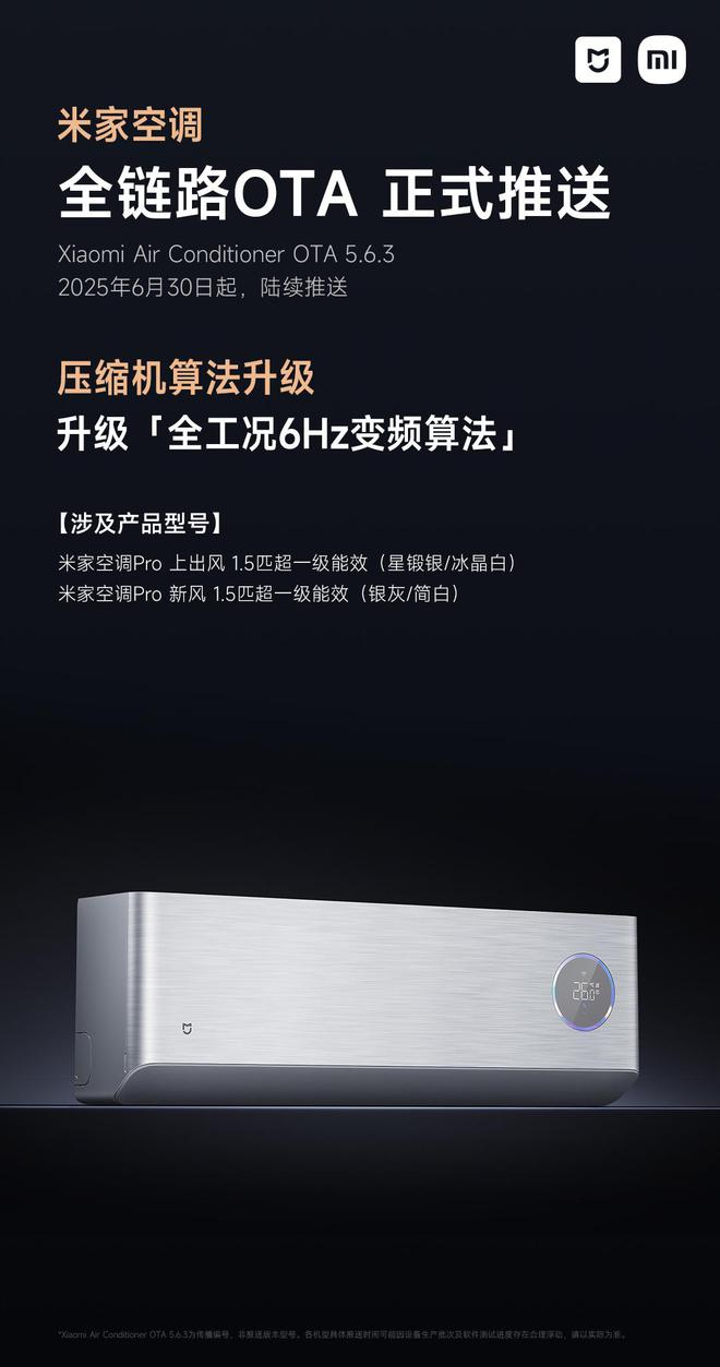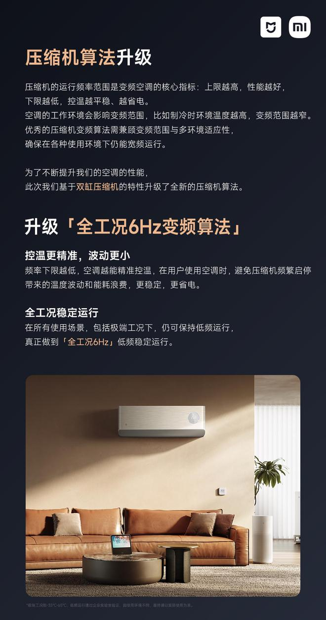 小米米家空调 Pro 系列压缩机升级为“全工况 6Hz 变频算法”
