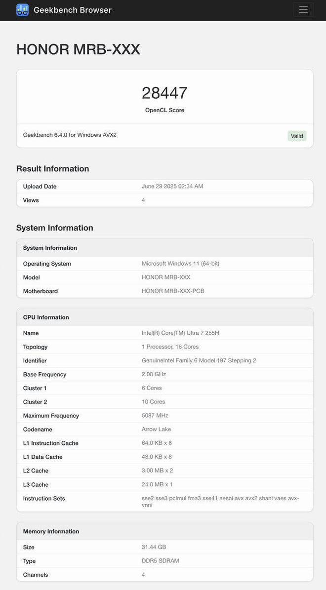 明日发布:荣耀 MagicBook Art 14 2025 笔记本跑分曝光