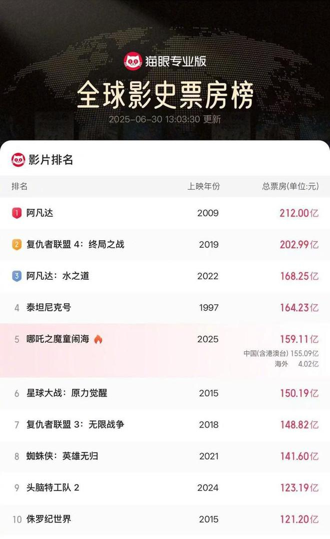 据猫眼专业版数据,电影《哪吒之魔童闹海》密钥已于昨日到期,累计总票房 154.4 亿,总观影人次 3.24 亿,上映至今共打破 113 项纪录,获得 308 项里程碑成就。