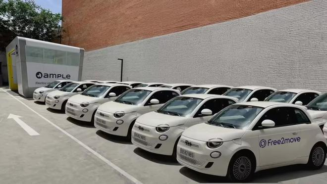 前不久,菲亚特在西班牙上线了 500 台换电版的 Fiat 500e,专供 Stellantis(菲亚特母公司)旗下的运营车队。