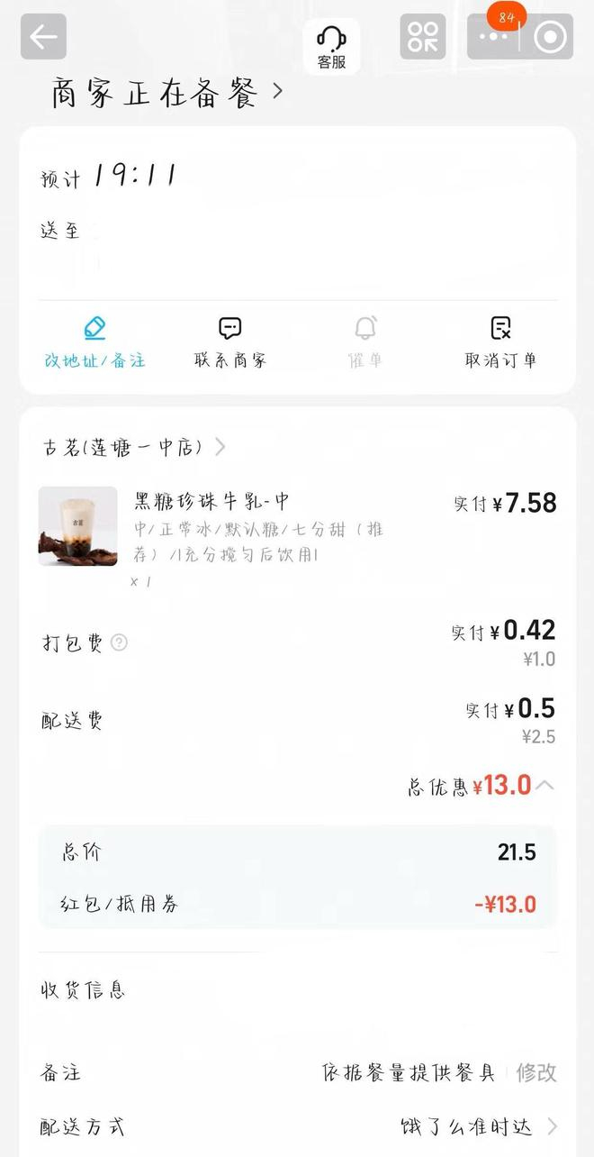 乍一看,我都懵了,不就是7.58元吗,这有什么?仔细一看,我才发现这张图暗藏玄机,这杯奶茶的实际消费,根本不是图中任何一个数字,而是7.58+0.42+0.5=8.5